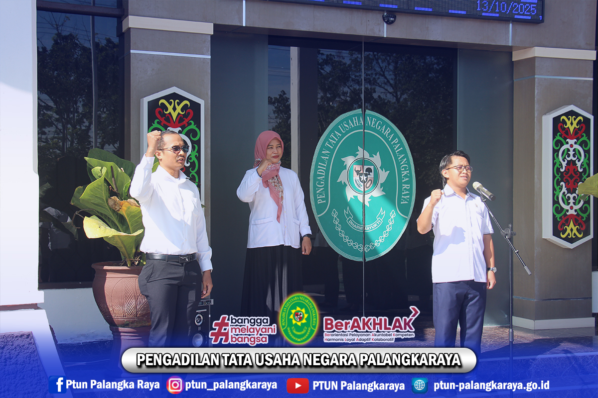 Pada hari Senin, tanggal 13 Oktober 2025 Pukul 08.00 WIB, Pimpinan, Hakim, dan pegawai PTUN Palangkaraya melaksanakan Apel...
