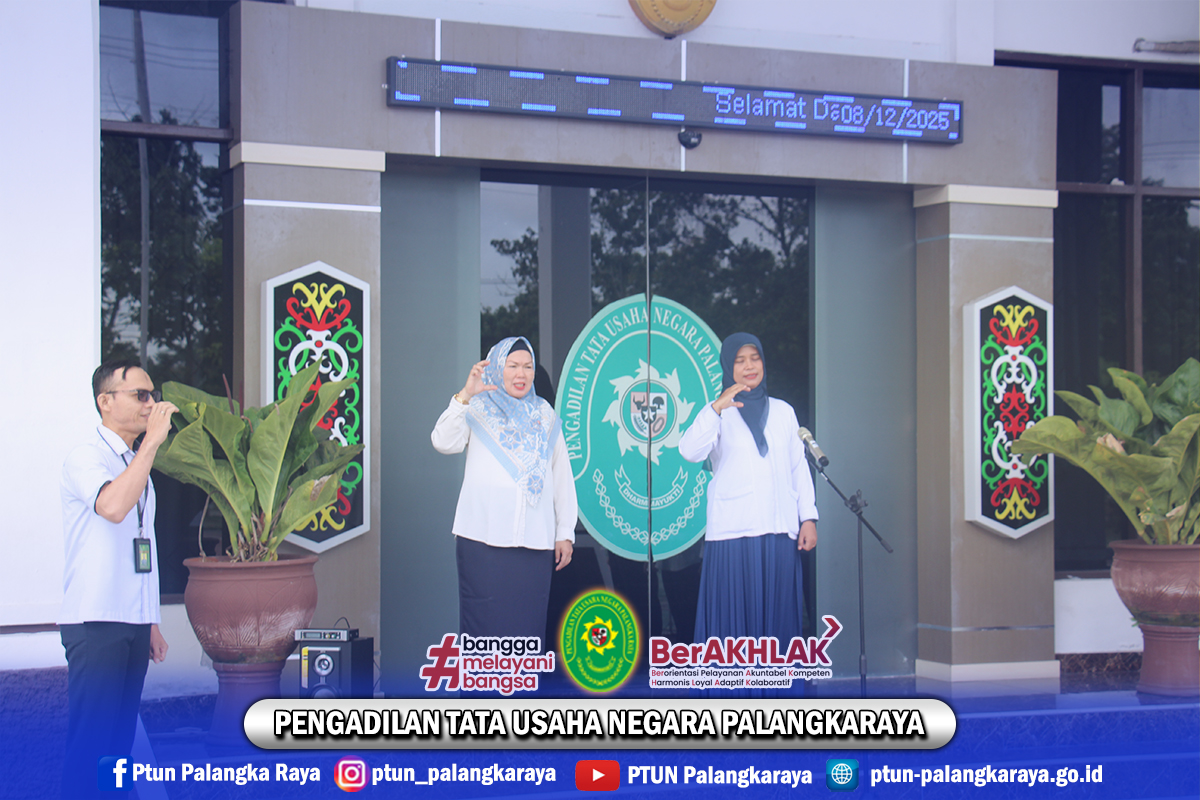 Pada hari Senin, tanggal 8 Desember 2025 Pukul 08.00 WIB, Hakim dan pegawai PTUN Palangkaraya melaksanakan Apel Pagi. Kegiatan...