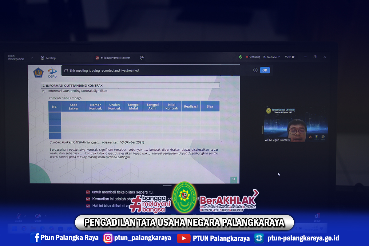 Kamis, 9 Oktober 2025Berdasarkan Surat Nomor : 1058/PTUN.W6-TUN4/UND.HM3.1.3/X/2025 perihal undangan rapat review SOP. Telah...