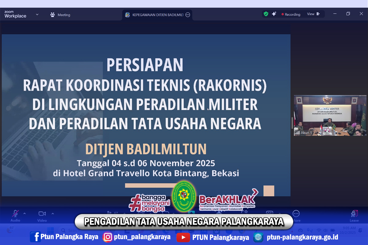 Berdasarkan Surat Nomor 1127/DJMT/UND.KP3.4.3/IX/2025 perihal Pembinaan Dirjen Badilmiltun. Ketua PTUN Palangkaraya, Ibu...