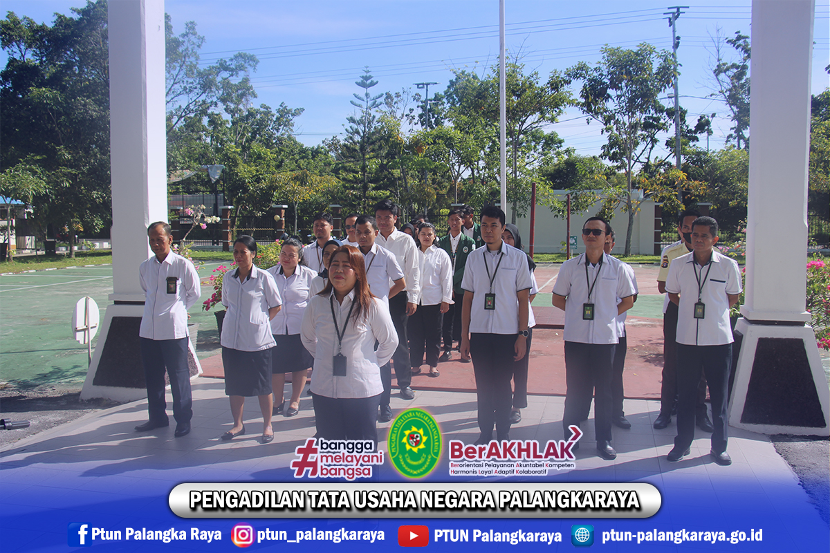 Pada hari Senin, tanggal 22 September 2025 Pukul 08.00 WIB, Hakim dan pegawai PTUN Palangkaraya melaksanakan Apel Pagi. Kegiatan Apel Pagi dipimpin oleh Hakim PTUN Palangkaraya Ibu Lailaturrahmah, S.H., sebagai Pembina Apel; Sekretatis PTUN Palangkaraya, Ibu Wiwik Krisnawati, S.Kom., M.Si. sebagai Komandan Apel.