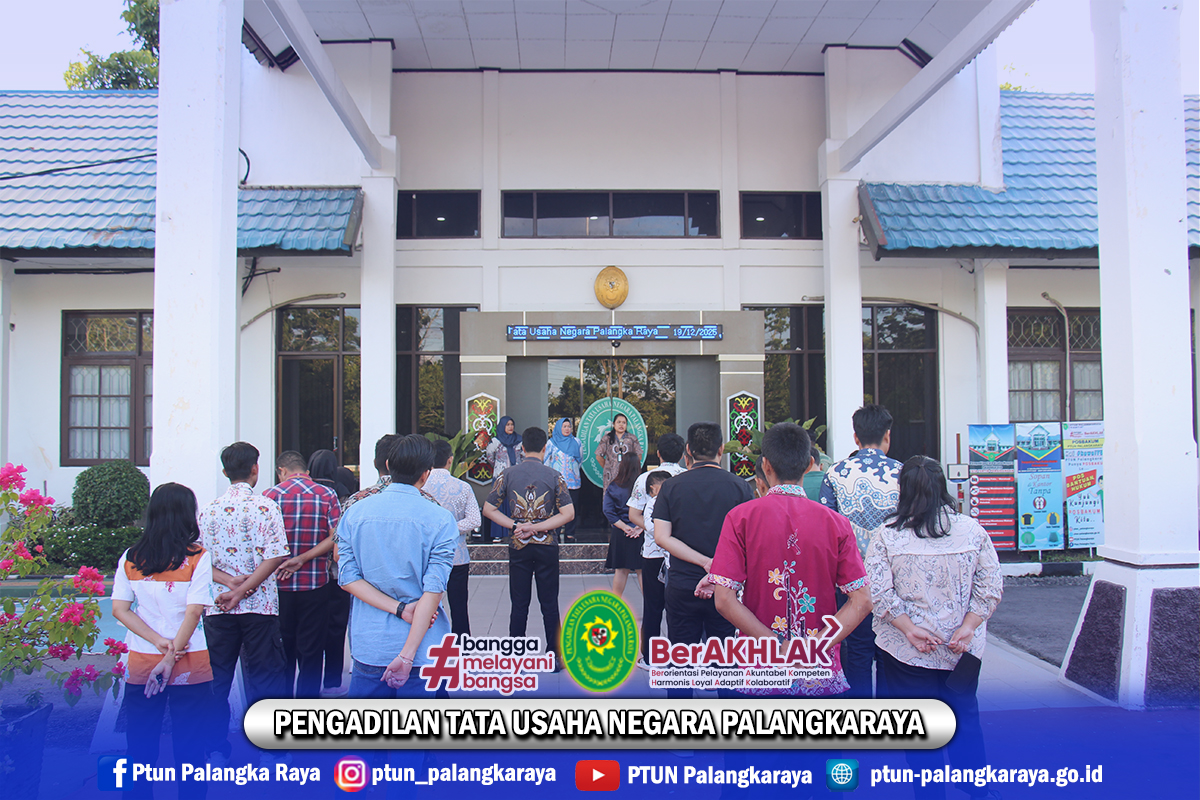 Pada hari Jumat, tanggal 19 Desember 2025 Pukul 17.00 WIB Ketua, Wakil Ketua, Hakim dan pegawai PTUN Palangkaraya melaksanakan Apel Sore. Kegiatan Apel Sore dipimpin oleh Hakim PTUN Palangkaraya, Ibu Bernadette Febriayanti, S.H., M.H. sebagai Pembina Apel; Sekretaris PTUN Palangkaraya, Ibu Wiwik Krisnawati, S.Kom., M.Si. sebagai Komandan Apel; dan Bapak Zein Saekti Ashiddiqi, S.H. sebagai pemimpin yel-yel.