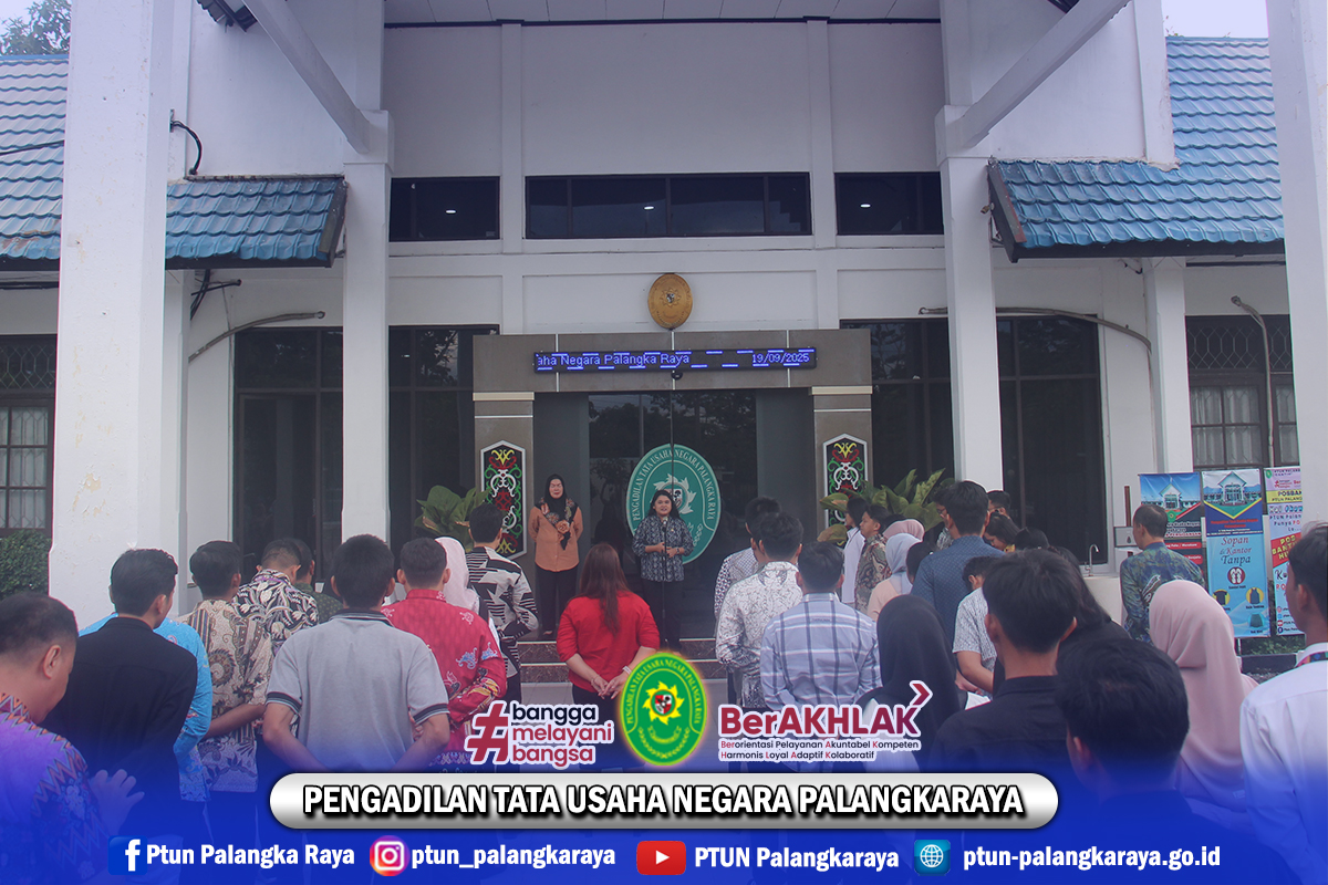 Pada hari Jum’at, tanggal 19 September 2025 Pukul 17.00 WIB, Hakim dan pegawai PTUN Palangkaraya melaksanakan Apel Sore...