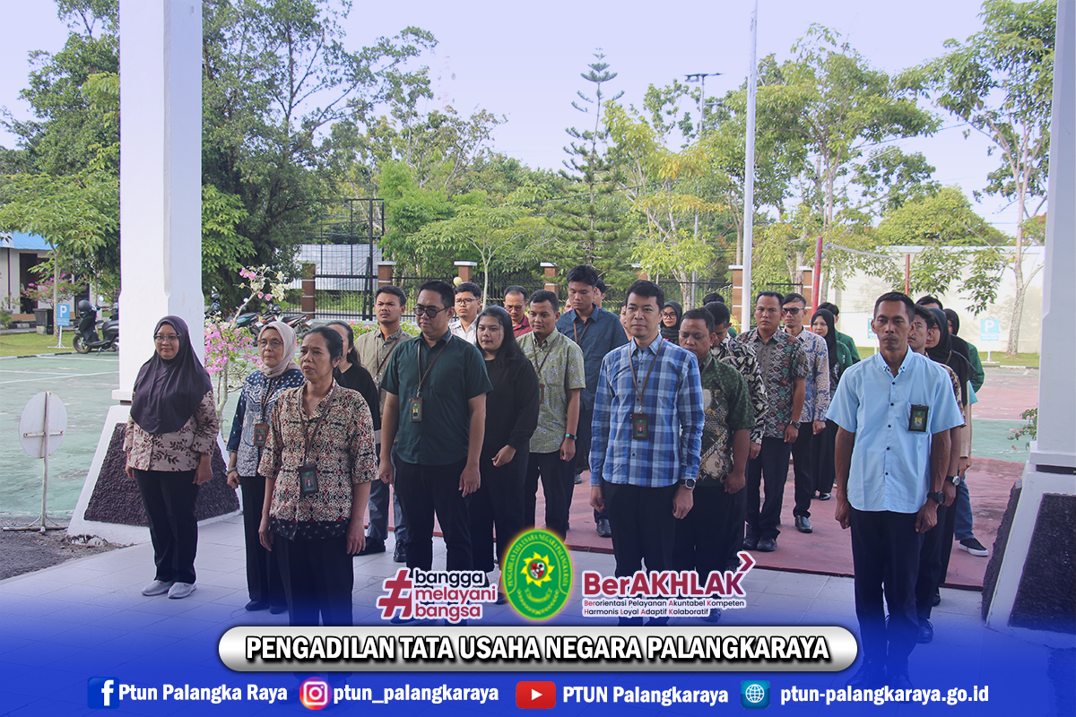 Pembina apel dalam amanatnya mengucapkan apreasiasi dan terima kasih kepada seluruh pegawai atas kinerja yang telah dilakukan dalam minggu ini, baik dalam pelayanan dan kegiatan dalam rangka HUT Peratun ke-35.