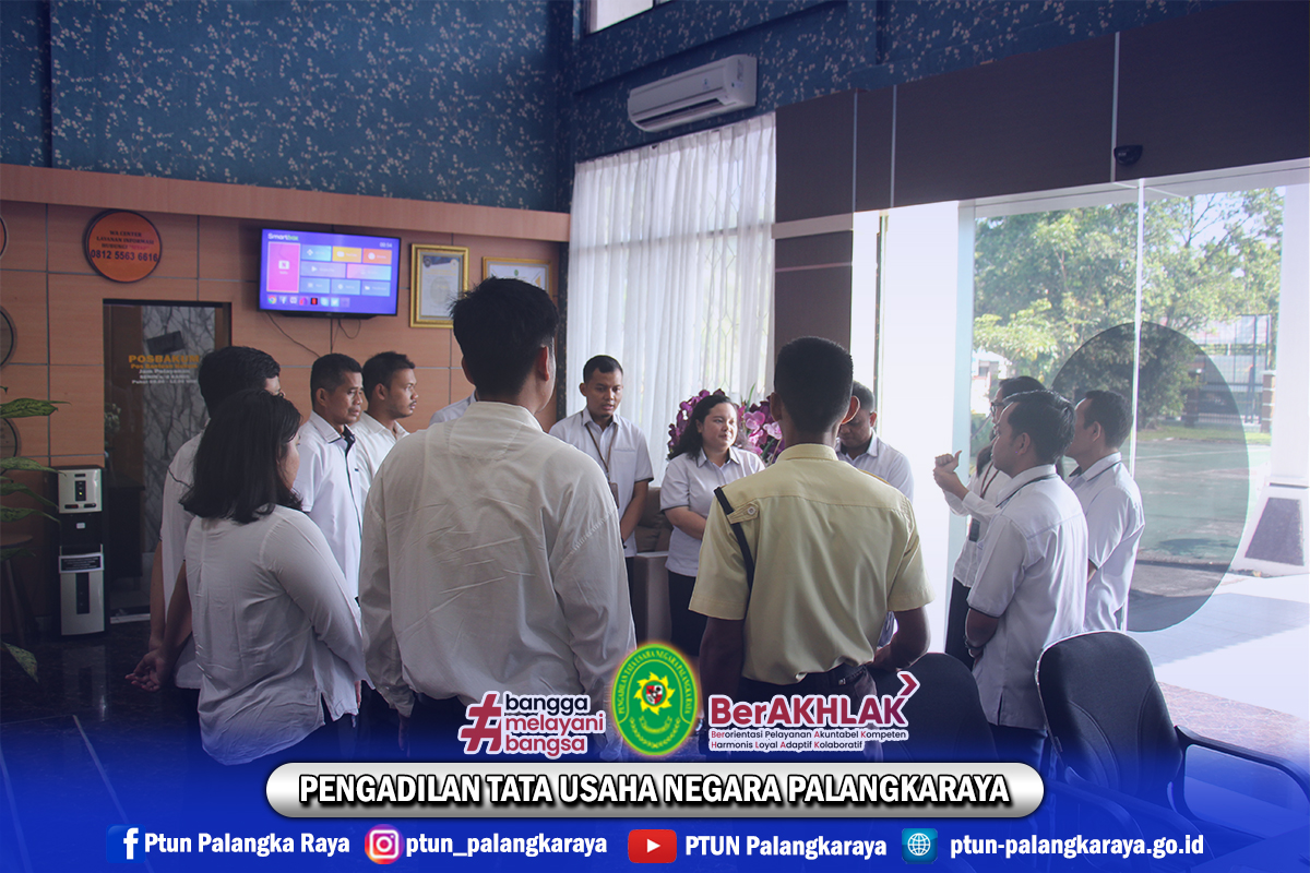 Pada hari Senin, tanggal 13 Oktoberr 2025 Pukul 08.15 WIB, Hakim PTUN Palangkaraya memberikan pengarahan dalam pelayanan PTSP. Briefing dipimpin oleh Hakim PTUN Palangkaraya, Ibu Friska Ariesta Aritedi, S.H., M.Kn.; diikuti oleh Aparatur Sipil Negara, Calon Aparatur Sipil Negara, dan Pegawai Pemerintah dengan Perjanjian Kerja yang bertugas di PTSP.