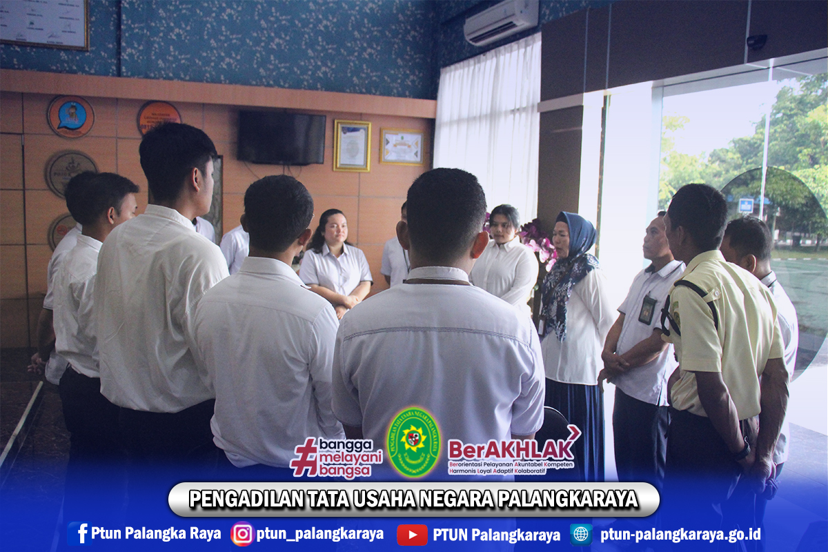 Pada hari Senin, tanggal 15 Desember 2025 Pukul 08.15 WIB, Ketua PTUN Palangkaraya memberikan pengarahan dalam pelayanan PTSP. Briefing dipimpin oleh Ketua PTUN Palangkaraya, Ibu Liza Valianti, S.H., M.H.; diikuti oleh Aparatur Sipil Negara, Calon Aparatur Sipil Negara, dan Pegawai Pemerintah dengan Perjanjian Kerja yang bertugas di PTSP.