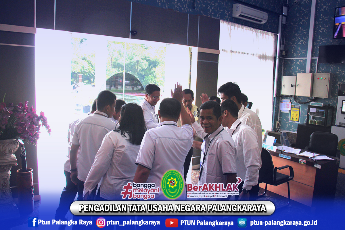 Pada hari Senin, tanggal 29 Desember 2025 Pukul 08.15 WIB, Hakim PTUN Palangkaraya memberikan pengarahan dalam pelayanan PTSP. Briefing dipimpin oleh Hakim PTUN Palangkaraya, Bapak Faisal Akbar, S.H.; diikuti oleh Aparatur Sipil Negara, Calon Aparatur Sipil Negara, dan Pegawai Pemerintah dengan Perjanjian Kerja yang bertugas di PTSP.