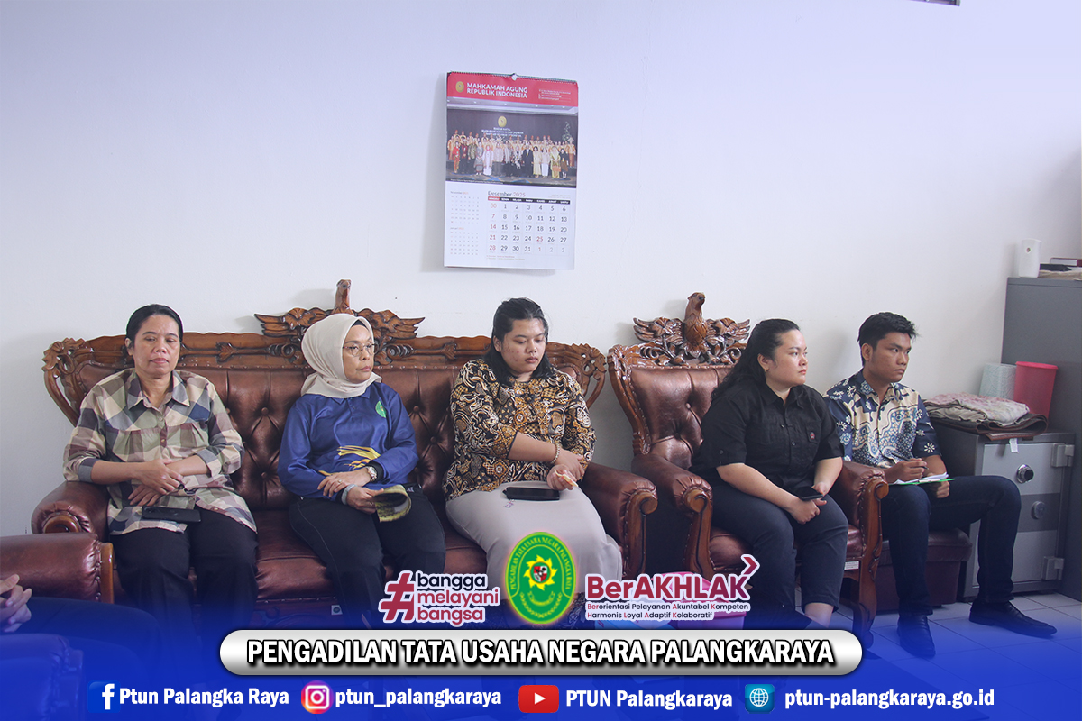Berdasarkan surat undangan nomor : 1291/PAN.PTUN.W6-TUN4/UND.HM3.1.3/XII/2025 perihal: Undangan Rapat Koordinasi & Monev Kinerja Bagian Kepaniteraan. Telah dilaksanakan Rapat Koordinasi & Monev Kinerja Bagian Kepaniteraan pada hari Jumat, 12 Desember 2025. Rapat dipimpin oleh Panitera PTUN Palangkaraya, Ibu Eni Sukmawati Siti Mardiyah, S.H. dihadiri Panitera Muda Perkara, Panitera Muda Hukum, ASN, CPNS, dan PPPK PTUN Palangkaraya.