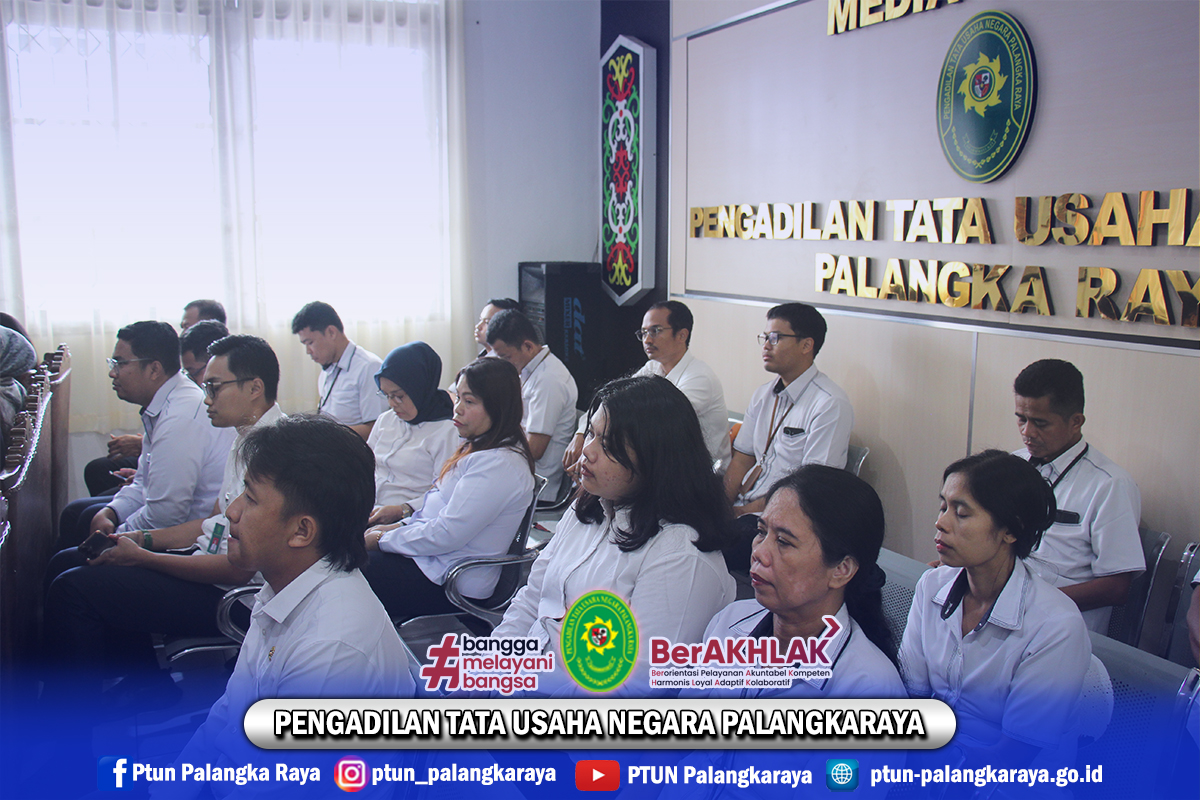 Berdasarkan surat Direktur Jenderal Badan Peradilan Militer dan Peradilan Tata Usaha Negara nomor: 1465/DJMT/UND.KP3.4.3/XI/2025 perihal Pembinaan Dirjen Badilmiltun secara daring. Pimpinan, Hakim, dan Aparatur Sipil Negara PTUN Palangkaraya mengikuti pembinaan dari Dirjen Badilmiltun secara daring yang dipimpin oleh Dr. Yuwono Agung Nugroho, S.H., M.H. Pembinaan satuan kerja bertujuan untuk meningkatkan kinerja, prefesionalitas, dan kualitas kinerja aparatur peradilan.