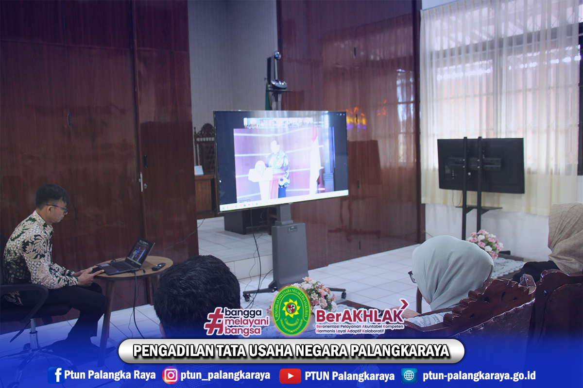 Secara luring hadir mengikuti acara, Ketua PTUN Palangkaraya Ibu Liza Valianti, S.H., M.H. didampingi Panitera PTUN Palangkaraya, Ibu Eni Sukmawati Siti Mardiyah, S.H., dan Sekretaris PTUN Palangkaraya Ibu Wiwik Krisnawati, S.Kom., M.Si.