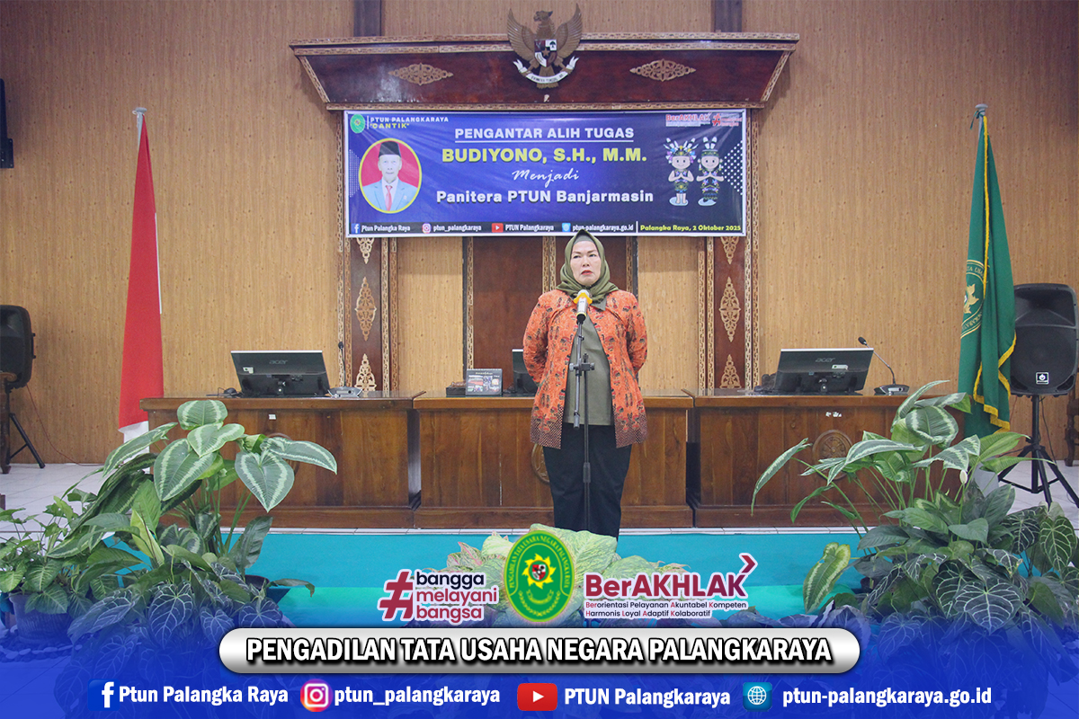 Pengadilan Tata Usaha Negara Palangkaraya menyampaikan rasa haru dan bangga dalam kegiatan Pengantar Alih Tugas Panitera PTUN Palangkaraya, Bapak Budiyono, S.H., M.M. Keluarga besar PTUN Palangkaraya mengucapkan terima kasih dan apresiasi tertinggi atas dedikasi, pengabdian, dan kontribusi berharga yang telah diberikan selama menjabat sebagai Panitera.