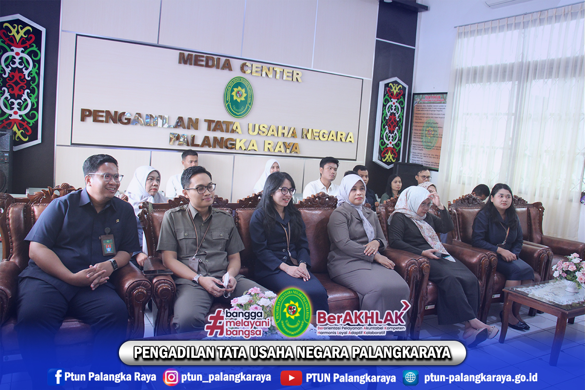 Wakil Ketua PTUN Palangkaraya Ibu Eka Putranti, S.H., M.H. ; Para Hakim beserta seluruh Aparatur Pengadilan pada PTUN Palangkaraya turut menyaksikan siaran langsung (live streaming) bertempat di Ruang Media Center PTUN Palangkaraya.