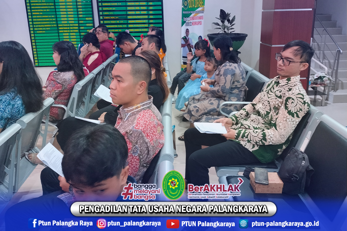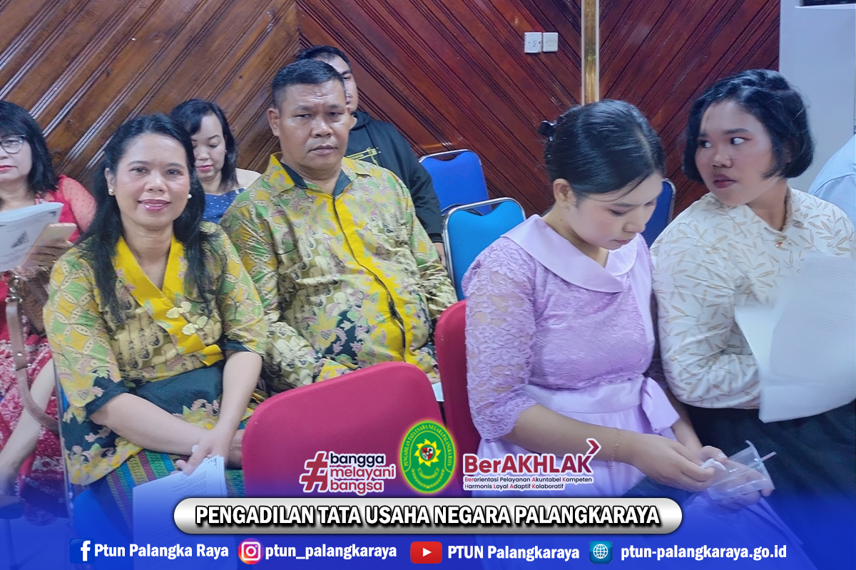 Hakim PTUN Palangkaraya, Ibu Bernadette Febriyanti, S.H., M.H., Panmud Perkara dan ASN PTUN Palangkaraya mengikuti Ibadah dan Perayaan Natal Persekutuan Kristiani Pengadilan se-Kalimantan Tengah.