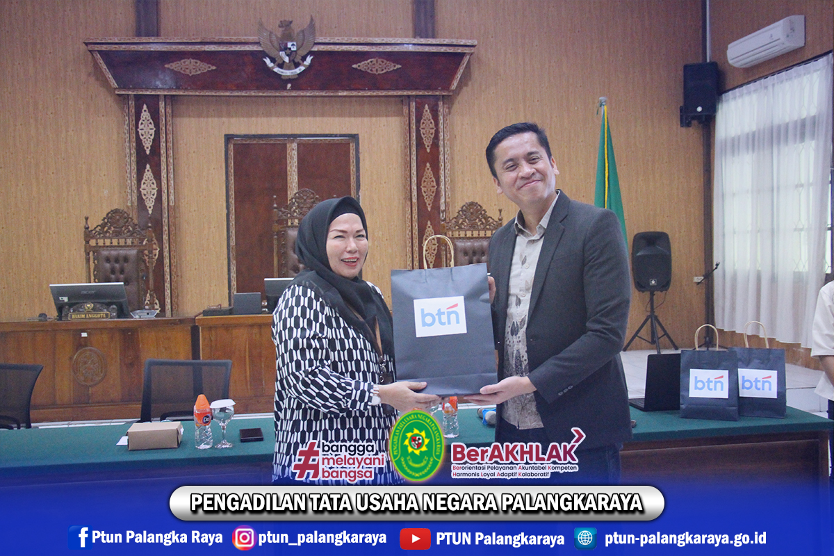 Pada hari Jumat, 12 Desember 2025 Pimpinan, Hakim, dan Aparatur Sipil Negara PTUN Palangkaraya mengikuti Sosialisasi Program Kepemilikan Hunian Graha Hakim Dari Btn. Kehadiran dari lingkungan Peradilan ini menunjukan antusiasme dan dukungan penuh terhadap inisiatif PP IKAHI dalam memperjuangkan kesejahteraan anggotanya melalui kemitraan strategis dengan BTN.
