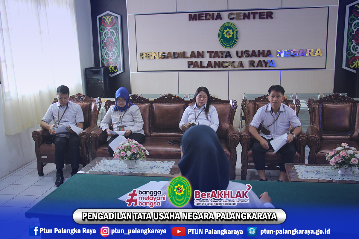 Wakil Ketua, Hakim, Panitera, Sekretaris, dan Kasubbag Kepegawaian, Organisasi, dan Tata Laksana melaksanakan Rapat Tim Penilai Agen Perubahan pada PTUN Palangkaraya. Adapun kegiatan rapat ini membahas dan memilih Agen Perubahan dan Pegawai Teladan pada PTUN Palangkaraya.