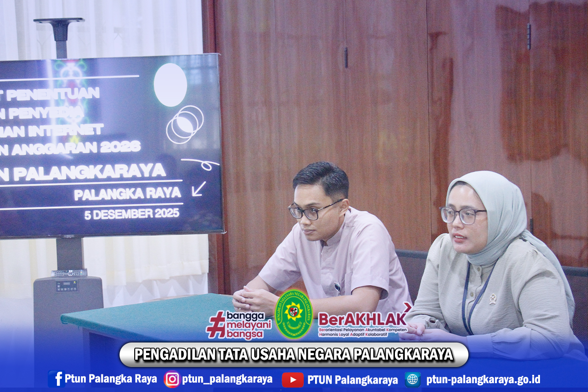 Adapun di dalam rapat membahas Penentuan Calon Penyedia Layanan Internet dan menentukan pemenangnya. Tahap selanjutnya adalah pengumuman yang akan diumumkan melalui media sosial dan website PTUN Palangkaraya pada hari Senin, 8 Desember 2025.