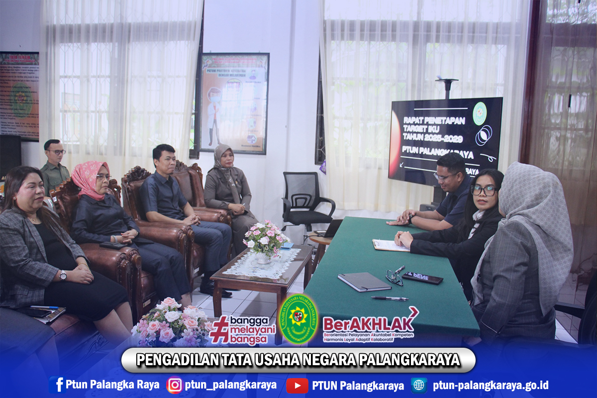 Menindaklanjuti Keputusan Sekretaris Mahkamah Agung RI Nomor : 27101/SEK/SK.RA1.3/X/2025 tanggal 31 Oktober 2025 tentang Penetapan Indikator Kinerja Utama Pengadilan Tingkat Banding dan Pengadilan Tingkat Pertama di Lingkungan Mahkamah Agung RI Tahun 2025-2029 diadakan rapat dengan pembahasan sasaran kinerja beserta indikator kinerja utama dalam penetapan IKU tahun 2025-2029 PTUN Palangkaraya.