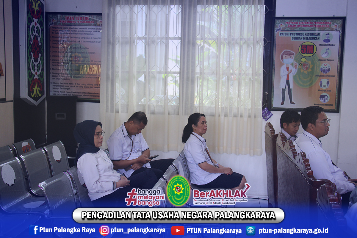 Wakil Ketua Pengadilan Tata Usaha Negara Palangkaraya, Ibu Eka Putranti, S.H., M.H., para Hakim, Panitera, dan beserta jajaran Kepaniteraan mengikuti kegiatan secara virtual melalui zoom meeting.