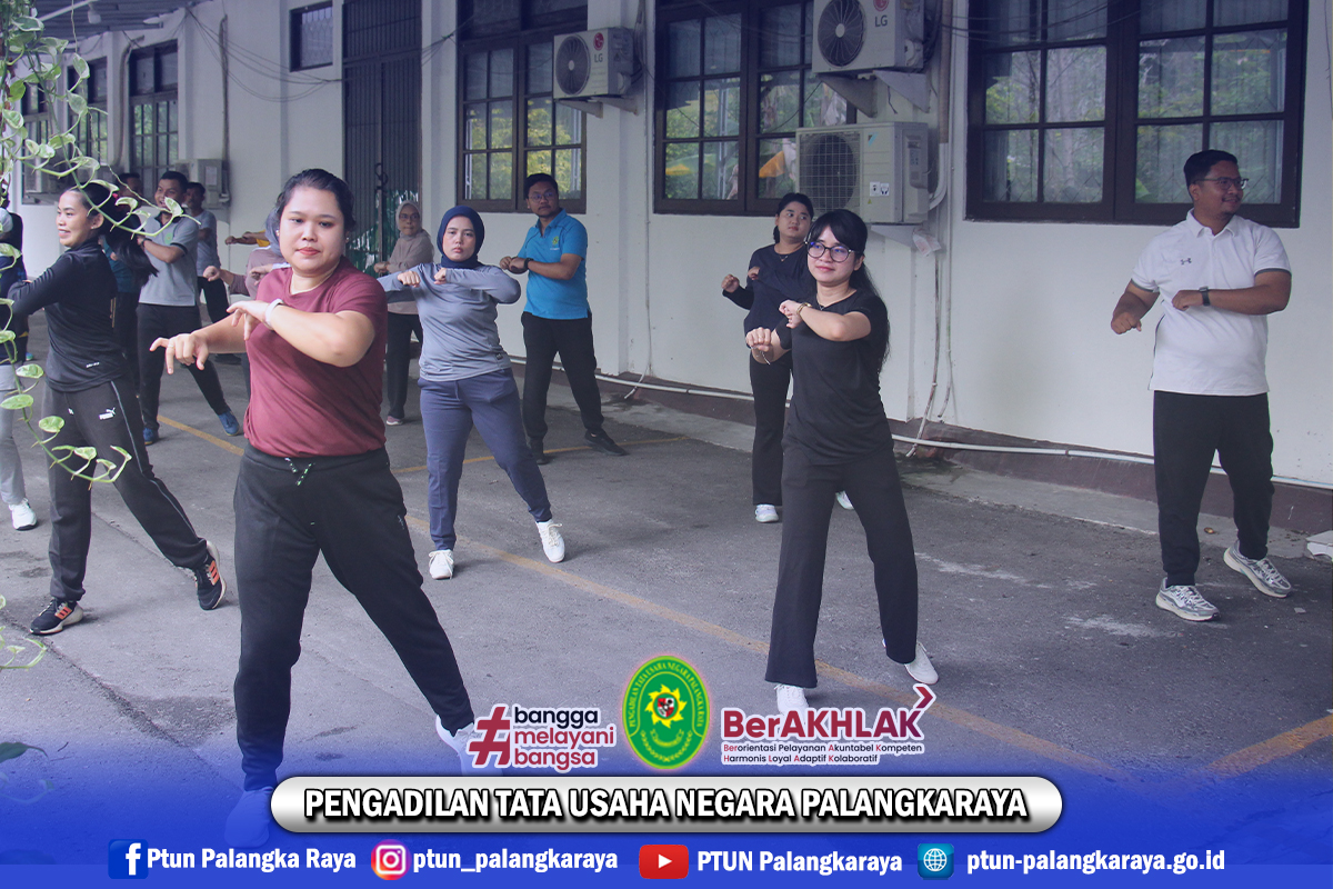 Keluarga besar PTUN Palangkaraya melaksanakan “Senam Bersama” sebagai wujud kebersamaan, menjaga kesehatan, dan mempererat silaturahmi antar aparatur peradilan. Langkah bersama menuju semangat kebersamaan.