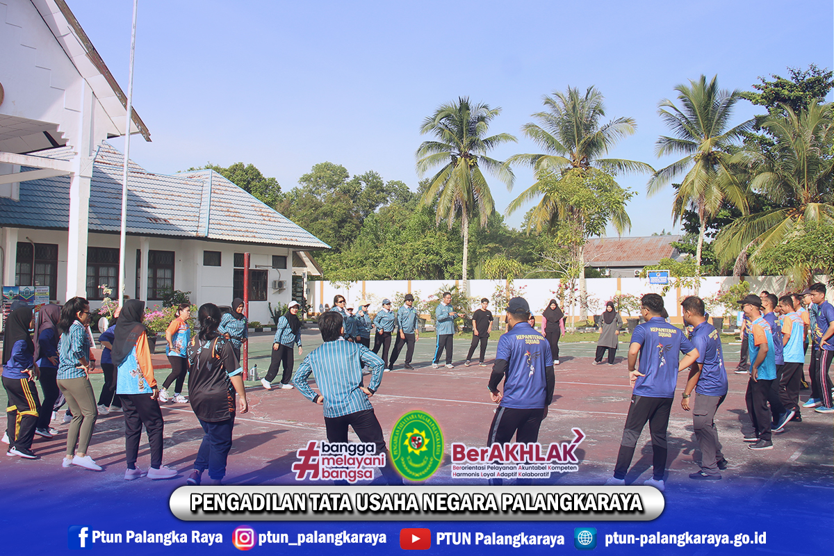 Keluarga besar PTUN Palangkaraya melaksanakan “Senam Bersama” sebagai wujud kebersamaan, menjaga kesehatan, dan mempererat silaturahmi antar aparatur peradilan. Langkah bersama menuju semangat kebersamaan.