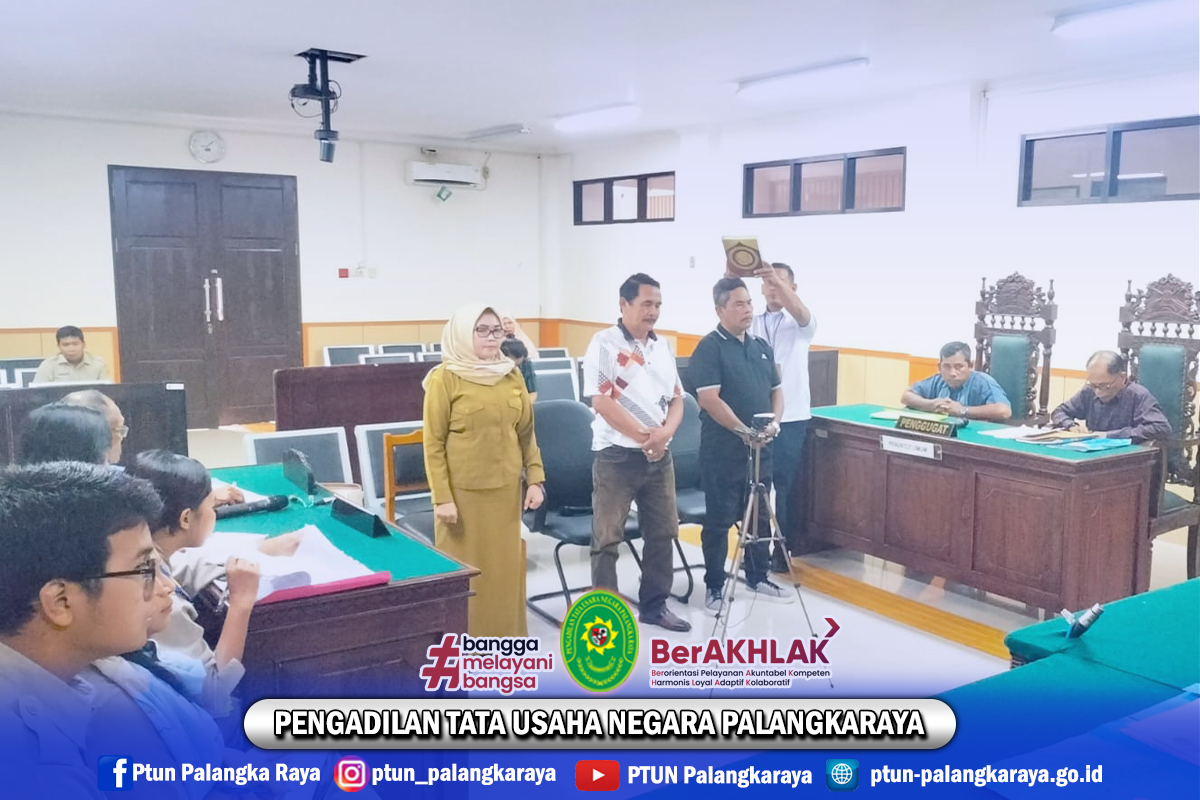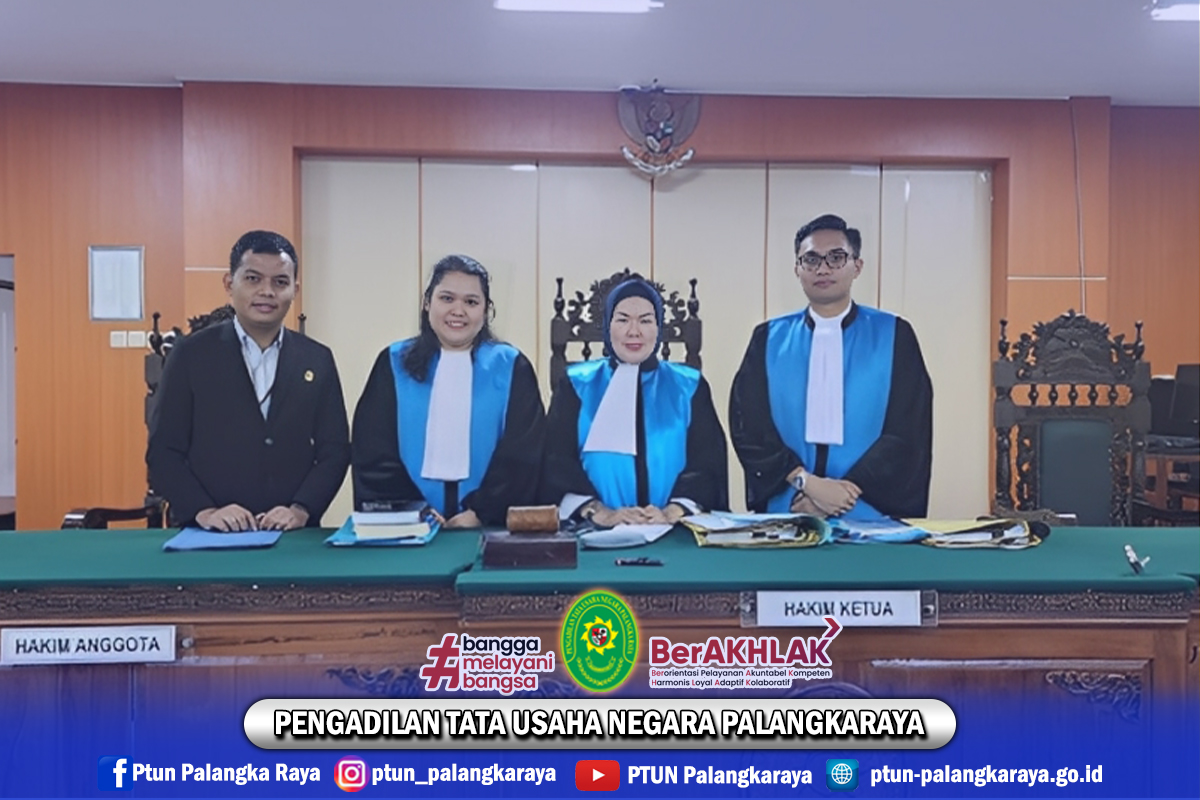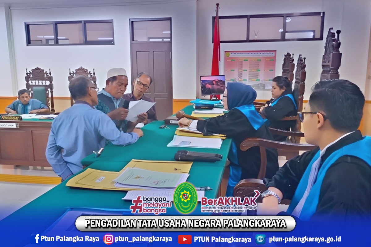 Berdasarkan Surat Tugas Nomor: 1125/KPTUN.W6-TUN4/ST.KP7.1/X/2025 Ketua PTUN Palangkaraya menugaskan Para Hakim, Panitera Pengganti, dan Pegawai Pemerintah Dengan Perjanjian Kerja PTUN Palangkaraya. Adapun susunan Majelis Hakim adalah sebagai berikut: Ibu Liza Valianti, S.H., M.H., Ibu Bernadette Febriyanti, S.H., M.H., Bapak Andi Deni Herwin, S.H., M.H., Bapak Dayu Setia Nugraha, S.H. sebagai Panitera Pengganti. Adapun agenda dalam persidangan adalah Tambahan Bukti Surat Para Pihak, Saksi Para Pihak dan Pemeriksaan Setempat.
