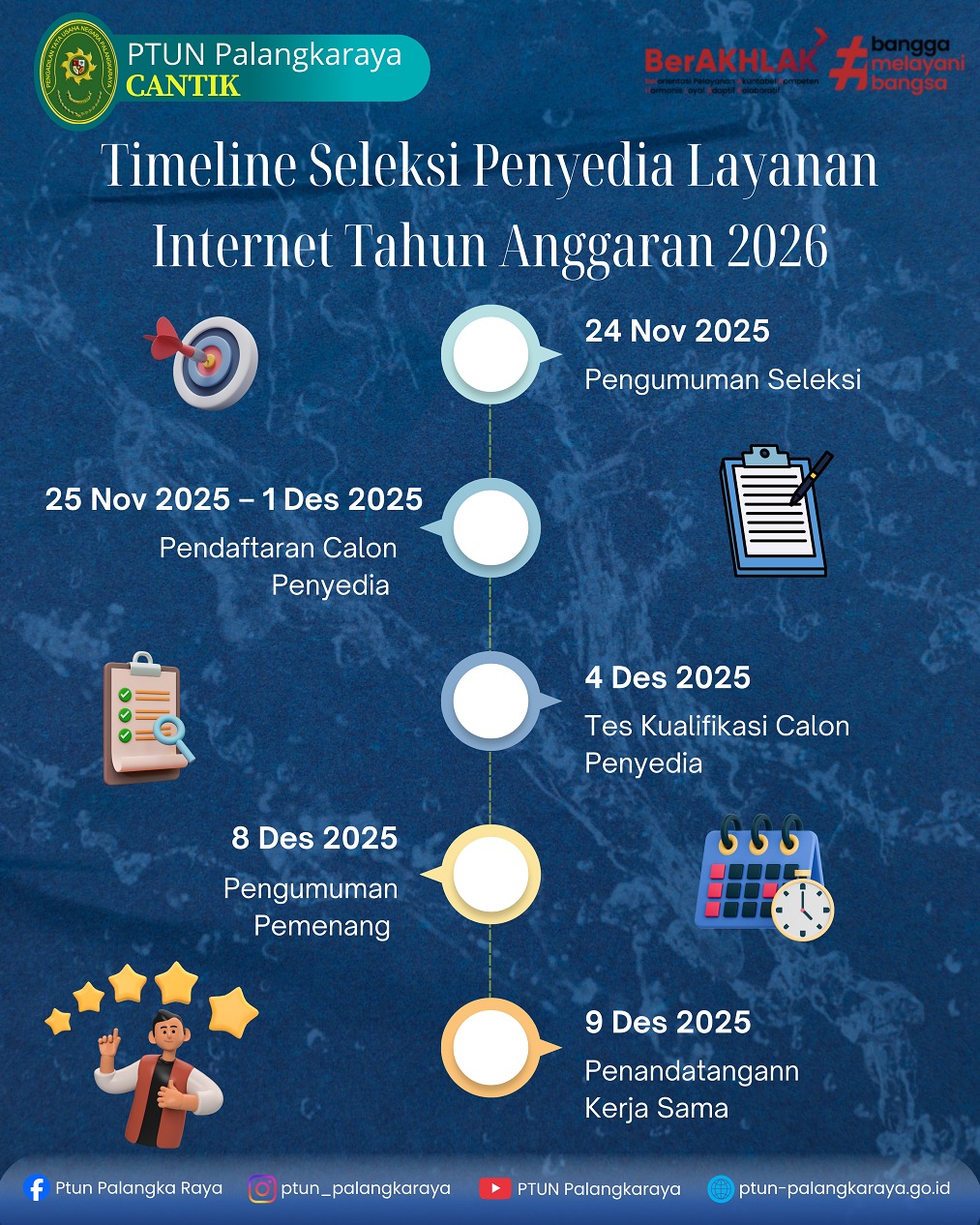 Pengadilan Tata Usaha Negara Palangkaraya membuka Seleksi Pengadaan Layanan Internet untuk Tahun Anggaran 2026.